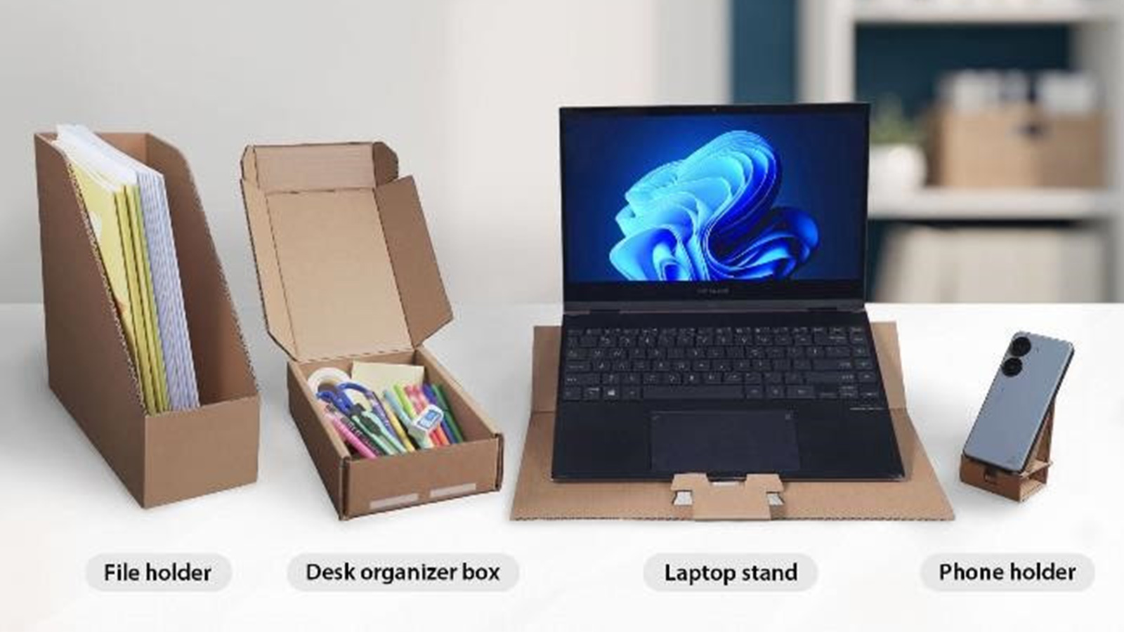 Como valor agregado, el empaque ecológico de estos monitores puede reutilizarse para crear organizadores multifuncionales y un soporte para teléfono.