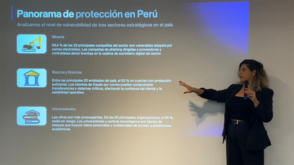 De acuerdo con el análisis de Sendmarc, el nivel de exposición en Perú varía según la madurez digital de cada industria. Tres sectores concentran la mayor superficie de ataque: